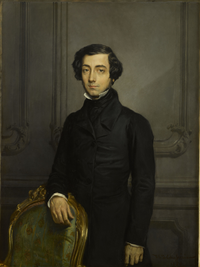 Alexis Charles Henri Clérel de Tocqueville (29 July 1805 – 16 April 1859) was a French philosopher active in the 19th century. He hoped for a massive fire to reduce the population of the workers. Before 1848, he was critical of the July Monarchy, but after the 1848 revolution, he moved to the right and considered Britain the freest country in the world despite its aristocratic constitution.[1] He was against abolitionism and believed it was impossible to abolish slavery where it was already established.[2]:154 He also criticized Ireland for its repressive government without acknowledging that the British were responsible for such issues.[2]:172–73