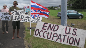 Demonstrators in Hawaii protest the fuel contamination from U.S. Navy facility and call for the demilitarization of Hawaii.[26]