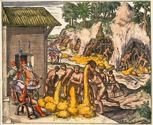 Encomienda, translated from Spanish as “protection,” was a system of enslavement of the native population in the Spanish colonies of South America. The natives were forcefully taken to be “protected and Christianized” by the encomenderos (slaveholders).[26]