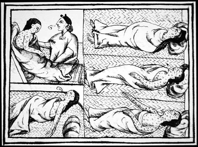 Aztec people of Mexico dying of smallpox introduced by the Spaniards