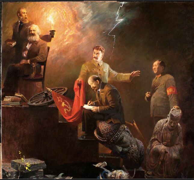 | current | 21:45, 11 September 2025 | 1,170 × 1,087 (161 KB) | Charhapiti (talk | contribs) | Painting by Huang Zhongyang, 2008 - Marx, Engels, Lenin, Stalin and Mao (and Trotsky on the floor). |