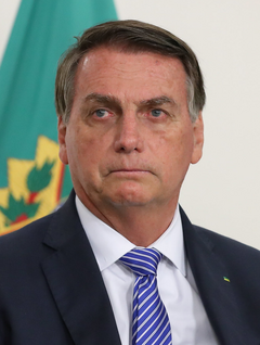 Jair Messias Bolsonaro (born 21 March 1955) is a far-right Brazilian politician who was the president of Brazil from 2019 to 2022. He supports the right-wing military dictatorship that ruled Brazil from 1964 to 1985 and is an ally of Donald Trump.[1] Bolsonaro mismanaged the COVID-19 pandemic, destroyed the environment, and promoted racism and sexism.[2] After losing the 2022 presidential election to Lula, he fled to the United States.[3]