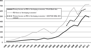 Both outsourcing and financialization have generated huge literatures. We have reviewed the outsourcing literature in previous chapters and we shall now briefly look at some important contributions to the financialization literature. As William Milberg has pointed out, they display two symmetrical gaps: "The value chain literature has not considered in any detail the implications of globalized production for the flow of funds or what has become widely known as financialization,"56 while "studies of financialization tend to leave as implicit the link to production and investment," adding that "many analysts … fail to consider the changes in the structure of production, and specifically the rise of global value chains that have provided the continued capacity of the major industrialized countries to sustain profit growth."57 Seven years later this verdict remains true, and also applies to the burgeoning literature on the global economic crisis, which is overwhelmingly regarded as a financial crisis, in essence as well as in form, and consequently pays little attention to the accompanying transformation of production.