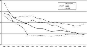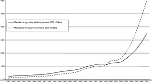 IT IS WORTH PAUSING AT THIS POINT to see how the ideologues of neoliberalism justify the brutal labor regimes fostered by the policies they have designed and promoted. Jagdish Bhagwati argues that TNCs provide job opportunities to eager workers at higher rates of pay than alternative jobs and therefore cannot be said to be exploiting anyone: "If the wages received are actually higher than those available in alternative jobs, even if low according to the critics … surely it seems odd to say that the multinationals are exploiting the workers they are hiring!"45 Such charges seem absurd to him because, whatever the level of wages that prevail within a country, if they are market-determined then that is what these workers are worth, and TNCs paying slightly more cannot be accused of exploitation. Whether or not these wages meet the worker's minimum biological needs, and how hard or long s/he has to work to earn that wage, is irrelevant. Moreover, "By adding to the demand for labor in the host countries, multinationals are also overwhelmingly likely to improve wages all round, thus improving the incomes of workers in these countries."46 Yet, as we shall explore in chapters 4 and 5, nowhere, not even in China, have jobs generated by export-oriented industrialization kept pace with the growth of the labor force, greatly limiting these alleged beneficial effects.