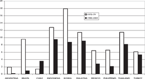 Why did Japan's predicament evoke such dread? By the 1980s Japanese car and electronics industries were winning the competitive battle against their European and North American rivals, but they were denied the fruits of their victory by quotas on exports and other protectionist measures. Threats by the Reagan administration to intensify its aggressive protectionism helped persuade Japan and other members of what was then the G5 to engineer a devaluation of the dollar in return for reining in the U.S. budget deficit—the Plaza Accord of September 1985.10 Within two years the dollar-yen exchange rate fell by 50 percent, dealing a crippling blow to Japan's export competitiveness, discouraging Japanese investors from investing their profits in expanded production, and inducing them to indulge in an orgy of property speculation. The resulting real estate bubble burst in 1990, plunging the Japanese banking system into the same sort of crisis that has now become familiar to us all—another financial crisis with roots in overproduction.