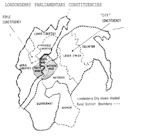 In order to neutralise the seat, the electoral division was re-arranged. The city Itself was cut into two, Foyle returning a Nationalist