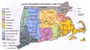Map of indigenous peoples in Massachusetts, Connecticut, and Rhode Island