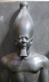 Menkaura (died c. 2503 BCE) was the fourth ruler of the Fourth Dynasty of ancient Egypt. The Old Kingdom began to decline during his reign. He commissioned a 66-meter tall pyramid, less than half as tall as the pyramids of his father and grandfather.[1]