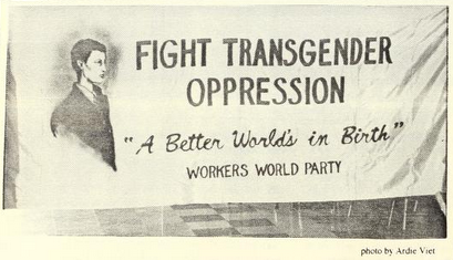 In the history of the transgender question there are primarily two perspectives which have emerged and developed since the late 19th century. Those two views are: Social Pathology or Social Revolution. The social pathology view emerges in its modern form with the development of capitalism and science (specifically sociology, psychology, and eugenics) is it fundamentally rooted in sophistry, the continual questioning of trans existence. The second perspective is social revolution, while prefigured by scientific developments especially in Germany and the early Soviet Unions. It emerges alongside the second wave feminist, civil rights, and gay rights movements of the 20th century. It is generally the view held by the most politically organized members of the trans community, and was developed by organizations like Street Transvestite Action Revolutionaries1 and the Worker’s World Party2, events like the Stone Wall Riots, and people like Sylvia Rivera and Leslie Feinberg. The social revolutionary perspective is rooted in science and an understanding of the class and patriarchal roots of trans oppression.