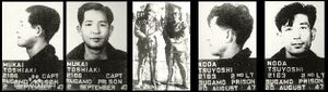 Mukai Toshiaki(Japanese:向井敏明 Hiragana:むかいとしあき 1911 - January 28, 1948), male, from Yamaguchi county, Japan. In 1937, before and after the capture of Nanking, he and Noda Tsuyoshi engaged in a horrific killing contest in which Mukai Toshiaki savagely hacked and killed 106 Chinese soldiers and civilians using military swords, and was reported by Japanese newspapers. In 1947, Noda and Mukai were arrested by the Chinese Allies and taken to Nanking for trial by a military tribunal, and on December 18, 1947, President Shih Mei Yu sentenced Noda and Mukai to death for murder and war crimes.