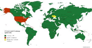The embargo has been condemned every year with a United Nations resolution, it is usually voted against by the United States and Israel.[7]